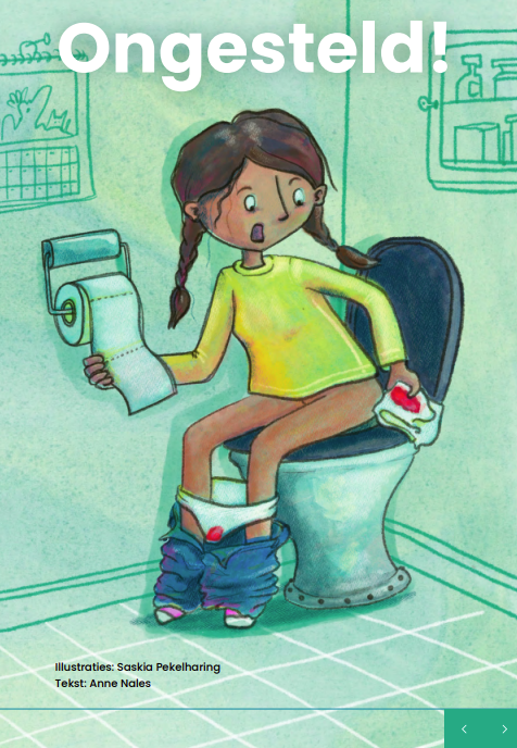 Het kleurrijke prentenboek Ongesteld! – over Iris die voor het eerst ongesteld wordt – geeft in korte zinnen en super makkelijke taal uitleg over menstruatie. Denk: er komt bloed uit je vagina en dan doe je een maandverband in je onderbroek. Geen ingewikkelde verhalen, wel veel illustraties. Perfect als voorlichtingsmateriaal voor individuele meiden of voor klassikaal onderwijs. De tekst is van Anne Nales, consulent seksuele gezondheid NVVS. De aansprekende illustraties zijn van Saskia Pekelharing, kunstdocent op het speciaal onderwijs. Ongesteld! is een uitgave van GGD Noord- en Oost-Gelderland en kan worden besteld via documentatiecentrum@ggdnog.nl. Let op: dat kan voorlopig alleen als je in Noord- en Oost-Gelderland woont. Gratis downloaden kan gelukkig ook, via Stichting Downsyndroom.