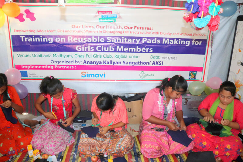 Under the EU funded Our Lives, Our Health, Our Futures (OurLHF) Program we’ve tried to equip the adolescent girls and women (10-25 years old) in CHT with proper knowledge and skills for healthy and safe menstruation management. Our aim is to make them aware of menstrual health management to stay safe and disease-free and lead a healthy life with dignity. One of our valuable activities was the Reusable Sanitary Pad Making Training.